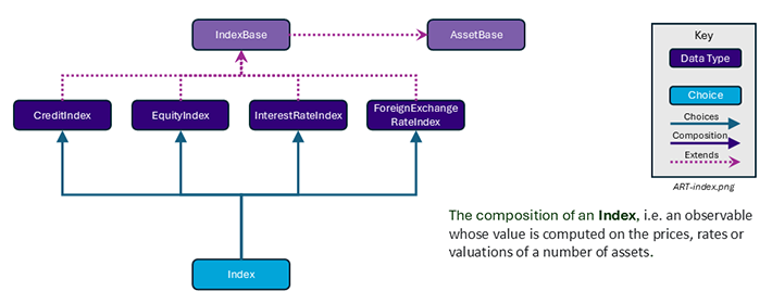 Like Asset, both the Basket and Index types also extend AssetBase. This ensures that all types of Observable share a common set of attributes, in particular an identifier.