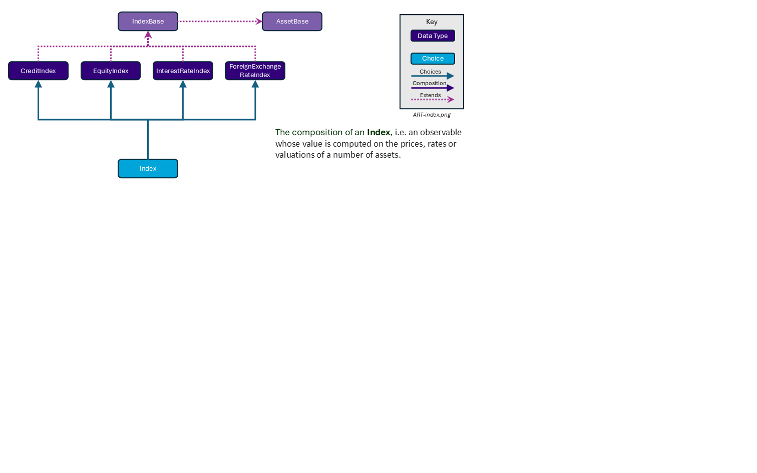 Like Asset, both the Basket and Index types also extend AssetBase. This ensures that all types of Observable share a common set of attributes, in particular an identifier.