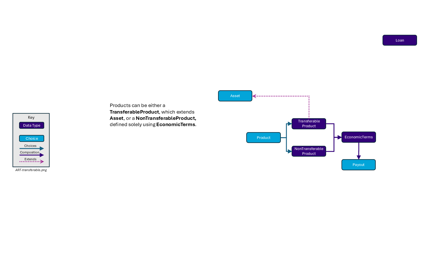 • A transferable product associates an asset, itself transferable, with the economic terms describing that asset.